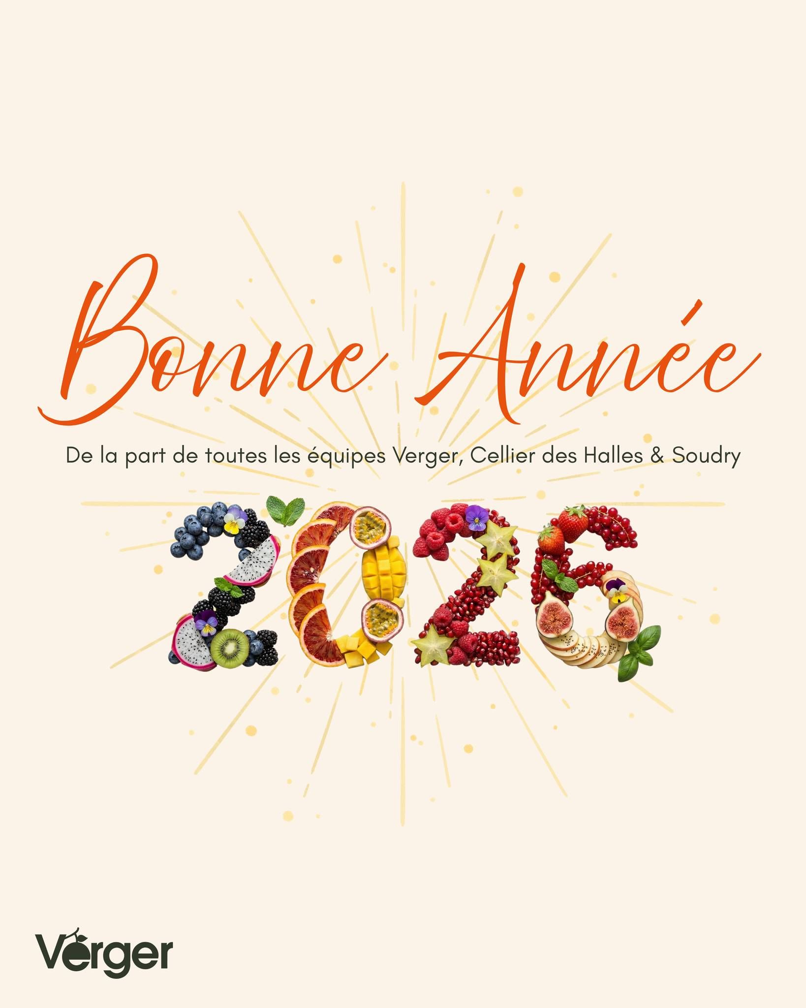 Bonne et Heureuse Année 2026 ! Toute l’équipe Verger, Cellier des Halles et Soudry vous présente ses meilleurs vœux ! Que cette nouvelle année soit pétillante, pleine de santé, de moments de partage et, bien sûr, de gourmandise ! Un immense MERCI pour votre incroyable fidélité et votre confiance tout au long de 2025. Nous avons hâte de vous retrouver en magasin pour partager une nouvelle année de saveurs et de bons produits. Prenez soin de vous ! #BonneAnnée #MeilleursVoeux #NouvelAn2026 #Verger #NouvelleAnnée #Santé #Gourmandise #Merci #ArtisanPrimeur #ProduitsLocaux #Merci2025