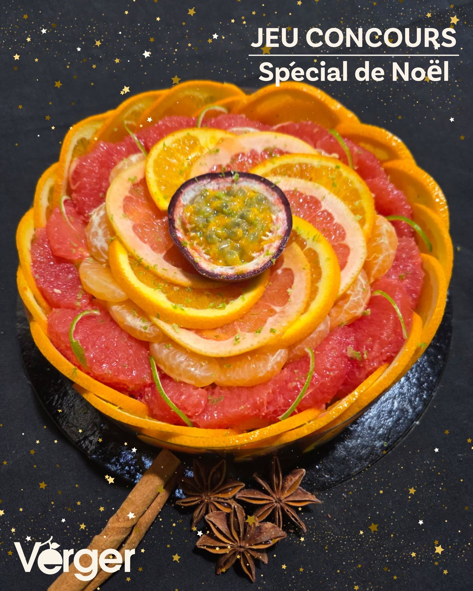 #CONCOURS Tentez de gagner une Confection Spéciale de Noël ! Les fêtes approchent à grands pas, et chez Verger, nous avons décidé de vous gâter ! Participez à notre grand jeu concours et tentez de remporter une confection spéciale de Noël, une bûche exquise composée de fruits frais. Le cadeau parfait pour illuminer vos tables de réveillon ou à partager avec vos proches ! Comment participer et multiplier vos chances de gagner :