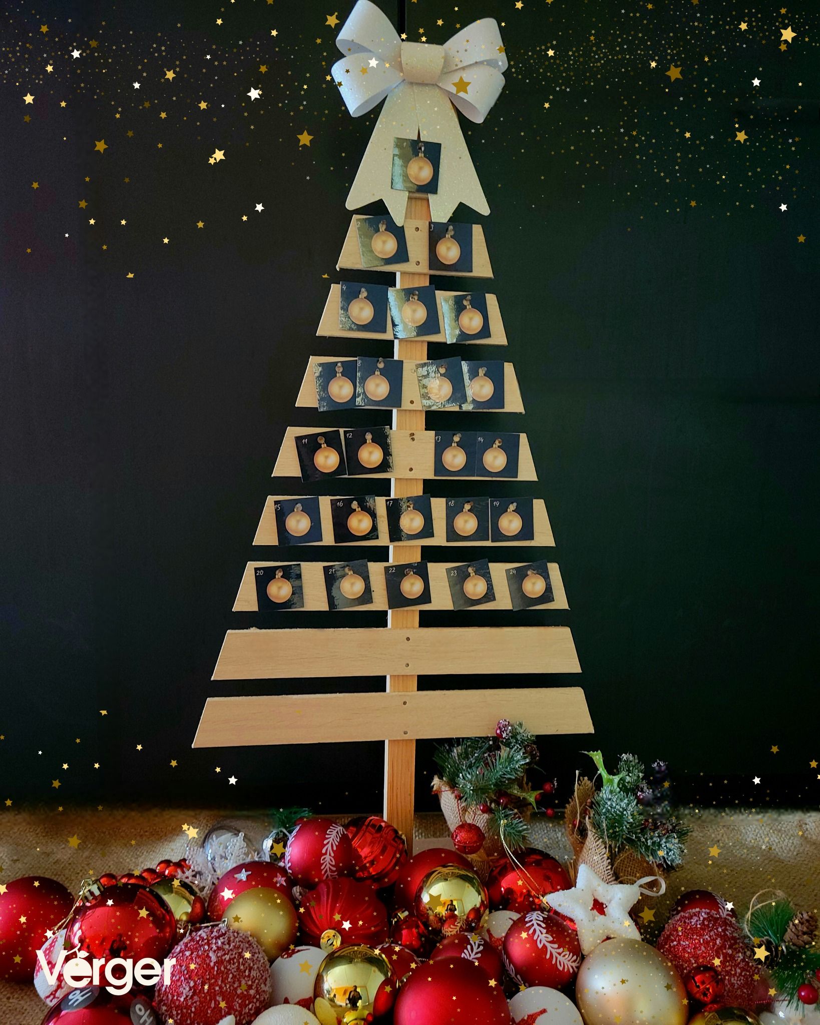 1 JOUR = 1 SURPRISE À GAGNER ! Le Calendrier de l’Avent GÉANT arrive dans vos magasins Verger ! Du 1er au 24 décembre, la magie de Noël, c’est chez nous… et c’est pour vous ! Nous avons caché 24 cadeaux incroyables derrière les cases de notre calendrier. À gagner chaque jour : Des fruits gourmands, des produits de crèmerie, de l’épicerie et plein d’autres surprises exclusives ! Des cadeaux spéciaux d’une valeur de 25 € le 23 et de 35€ le 24 vous attendent ! Pour participer, c’est ultra-simple :